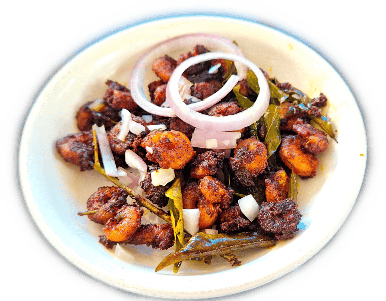 Enjoy the perfect blend of spices in our prawn curry, a true taste of Kerala.